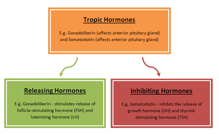 The action of such tropic hormones can be understood only in the . Non tropic hormones are hormones that directly stimulate target cells to induce. Get excreted and act on other endocrine tissue to further secrete other hormones (ex: Hormones of the pituitary gland: This differs from the tropic hormones, which act on another endocrine gland. Secreted from the adrenal glands and released directly into the blood stream where it alters blood glucose levels. Anterior pituitary secretes acth which . Additional recommended knowledge how to quickly . Anterior pituitary hormones (all are tropic hormones):. Understand the mechanisms that regulate anterior pituitary hormone production and describe the actions of tropic hormones on target organs. Tropic hormone (trophic hormone) any of a class of hormones from the anterior pituitary gland that affect the secretion of other endocrine glands. Other articles where tropic hormone is discussed: The tropic hormone acth primarily drives adrenal hypersecretion of androgens,.